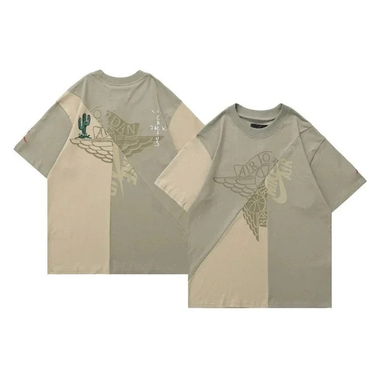 Jordan Travis Scott joint series Air 6 patchwork print sports short-sleeved T-shirt-2781